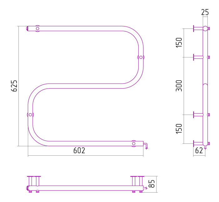 Полотенцесушитель электрический Стилье ЭПС "S" 600x600 (53 Вт)