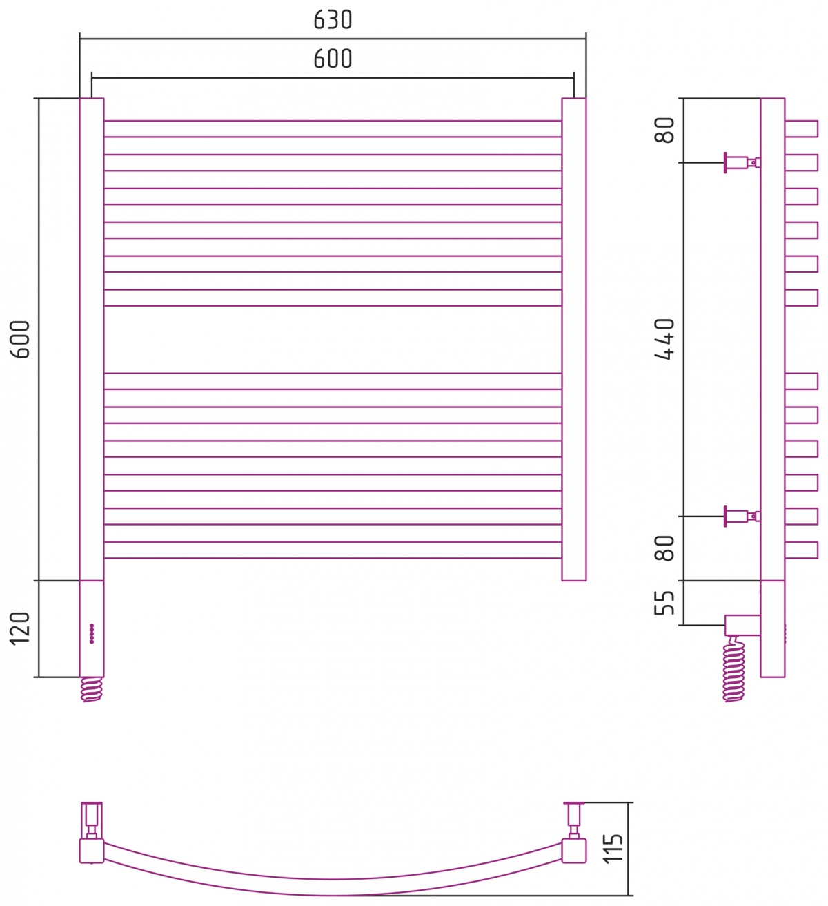 Полотенцесушитель электрический Сунержа Аркус 3.0 600x600