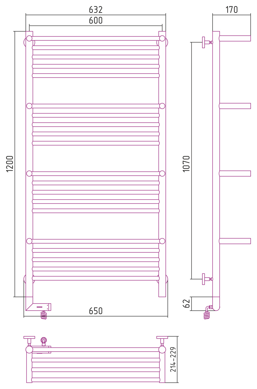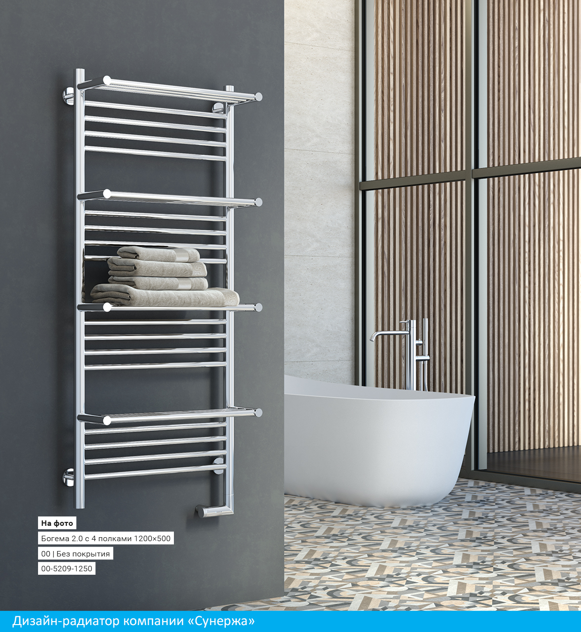 Полотенцесушитель электрический Сунержа Богема +4 полки 2.0 1200x600