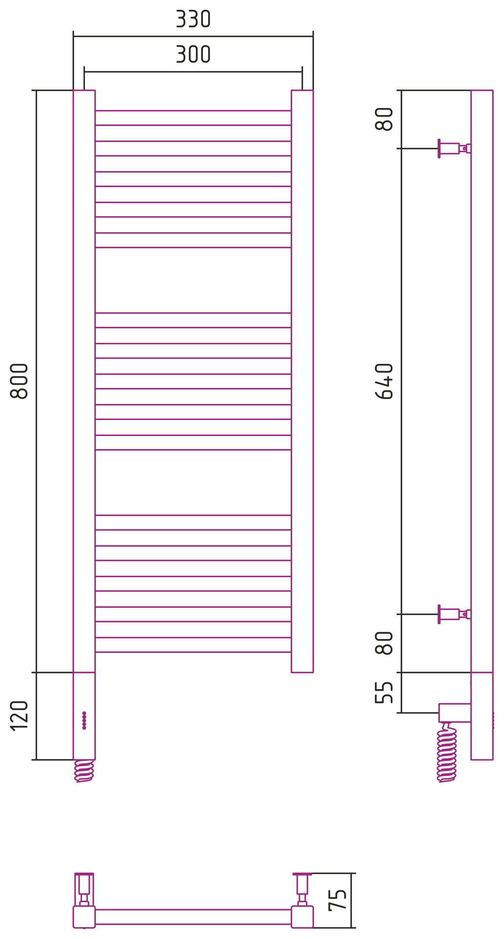 Полотенцесушитель электрический Сунержа Модус 3.0 800x300